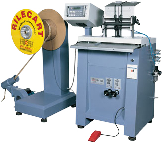 Механо клапан на операционном столе прижмет блок листов, а стол сдвинется вглубь навивочной машины к модулю обжима, для того, чтобы отперфорированные отверстия четко совместились с витками спирали. После этого происходит возврат стола в нулевую позицию, и этим распологая спираль непосредственно в зоне модуля обжима, который, кстати, может быть очень быстро замен на любой другой диаметр спирали. Если используется малый диаметр спирали (1/4” или 3/16” ) вполне допустима функция блокировки операционного стола от передвижений, и навиваемый блок подается прямо в зону зажима без предваряющего прижима на операционном столе. При осуществлении операции зажима одновременно подается ригель. RilecartR500 дает возможность вкладывать любой ригель любого размера диапазона 100-300мм с посредством встроенного автоподатчика любых ригелей от 100 до 300 мм.